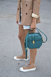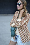 Taking elements from the best selling Atomic, the Atomic Starlet morphs into a graphic hexagonal form available in both regular and mini metallic snakeskin versions, featuring gold hardware and adjustable strap.