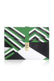 SPORTS LUXE ENVELOPE CLUTCH GREEN/BLACK/WHITE LEATHER APPLIQUE