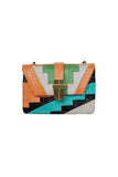 A kaleidoscope of patchwork snakeskin front and back with miniature matching mirror, the signature Angel Jackson gold samaya hardware and double interior compartment.