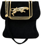 Made from super soft suede these off duty bags are sure to brighten up your look. A hand crafted gold jaguar and frame sits on the front of the bag to make an eye catching statement. There is a useful interior pocket and a throw over the shoulder chain and suede strap.