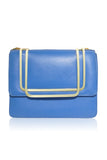 A chic and pared back leather version is available in a range of primary colours, featuring 1960s style gold frame across the flap, which also lifts to create a hand-held metal handle.