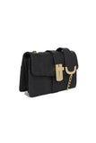 Gold tone chain and leather strap features snakeskin shoulder panel with gold tone details