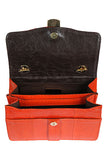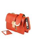 This bright coral snakeskin handbag comes with miniature matching mirror, making it the perfect going out accessory this season.