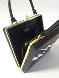 black leather cross body satchel or vanity case by British handbag designer Angel Jackson