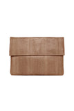 TAN LARGE FOLDOVER SNAKESKIN CLUTCH