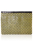 Genuine snakeskin is hand-woven to form a checkerboard graphic with our new Woven pouch. In bold black and yellow, this pouch makes a great alternative to a structured clutch and is the perfect finishing touch to a chic outfit.